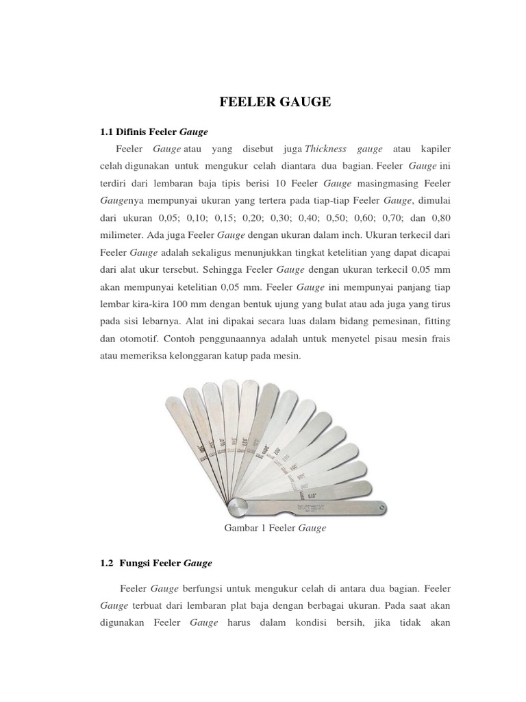 More than 7 million monthly visitors and 8100 sellers already trust us. Feeler gauge adalah alat ukur mekanik yang digunakan untuk mengukur jarak atau celah antara dua benda yang saling bersinggungan keausan suatu benda yang bersiggungan dan alur-alur atau groove yang berukuran kecil. Fungsi dan Cara Menggunakan Feeler Gauge - Feeler gauge adalah alat ukur mekanik yang digunakan untuk mengukur jarak atau celah antara dua benda.