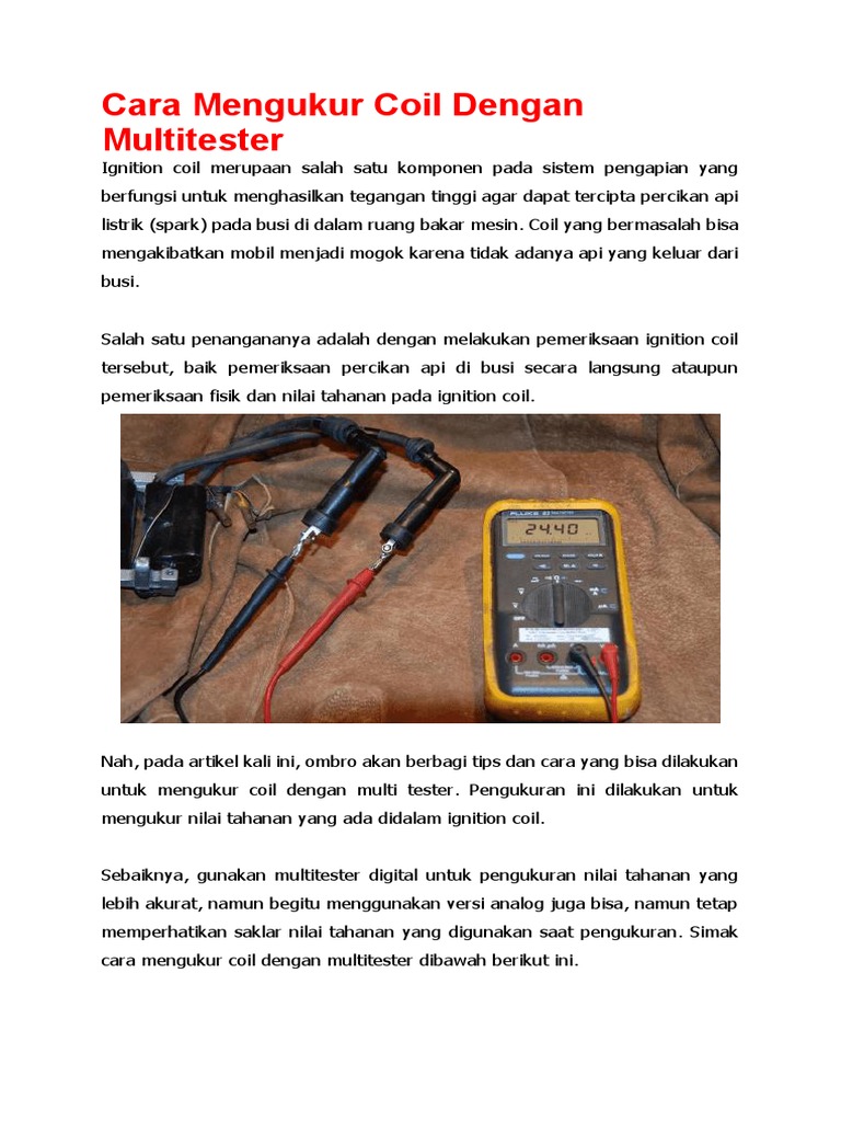 Umumnya coil jenis ini menambahkan ballast resistor guna mencegah panas berlebih pada coil. Multimeter adalah alat ukur yang dipakai untuk mengukur tegangan listrik arus listrik dan tahanan resistansi. Dalam menguji dan memeriksa komponen elektronika tentunya diperlukan sebuah alat untuk pengerjaannya.