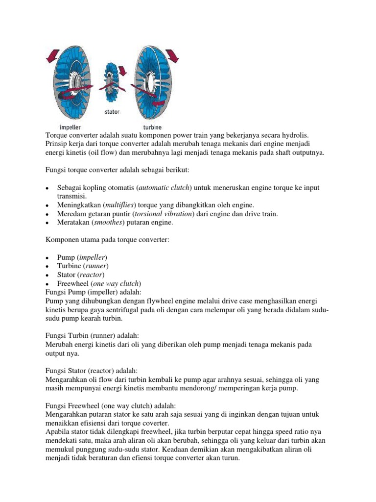 Fungsi torque converter yang pertama adalah sebagai kopling otomatis. Fungsi dan Cara Kerja Torque Converter. PRINSIP KERJA TORQUE CONVERTERA.