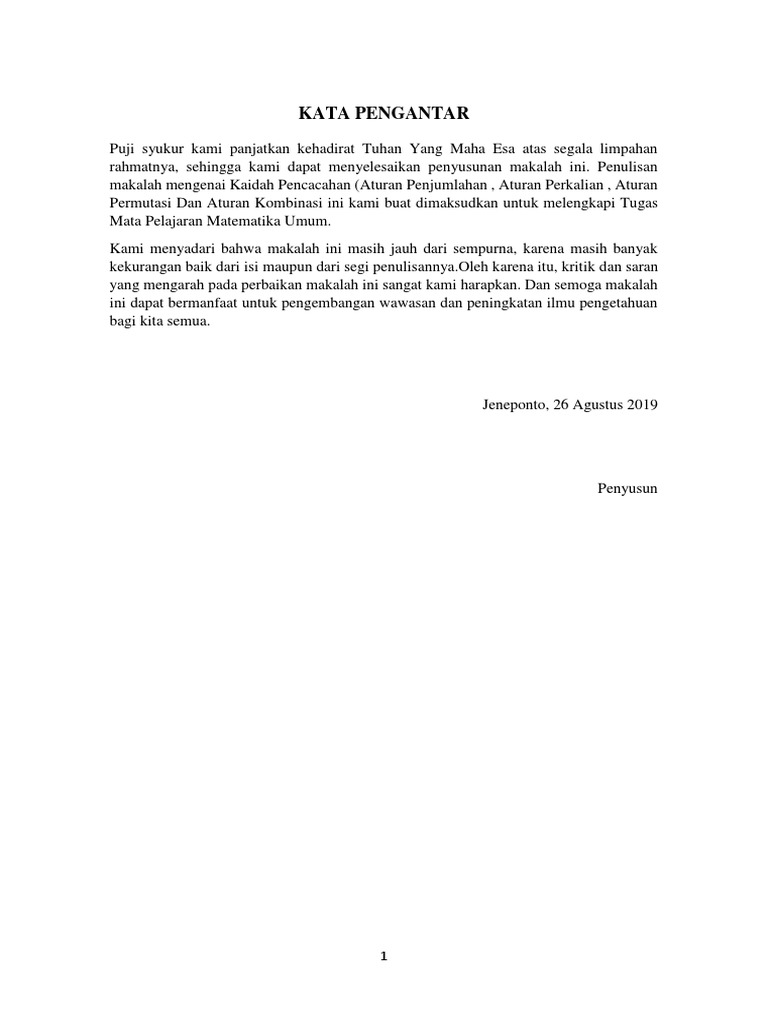 Makalah Kaidah Pencacahan Aturan Penjumlahan Perkalian Permutasi Dan Kombinasi