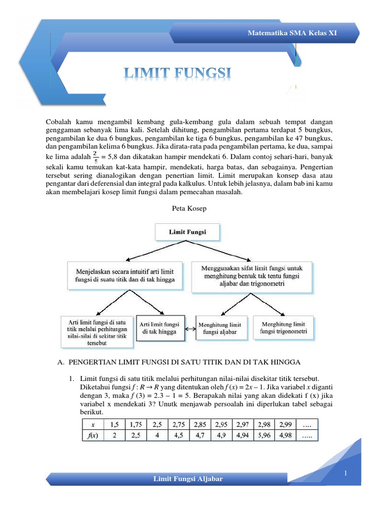 Makalah Limit Fungsi Kelas 11. A short summary of this paper. Menghayati pola hidup disiplin kritis bertanggung jawab konsisten dan jujur serta menerapkannya dalam kehidupan sehari-hari. Saya dapat dari alumni Matematika Sahabat Dendy Modul Matematika SMA Kelas XI Limit Fungsi 3.